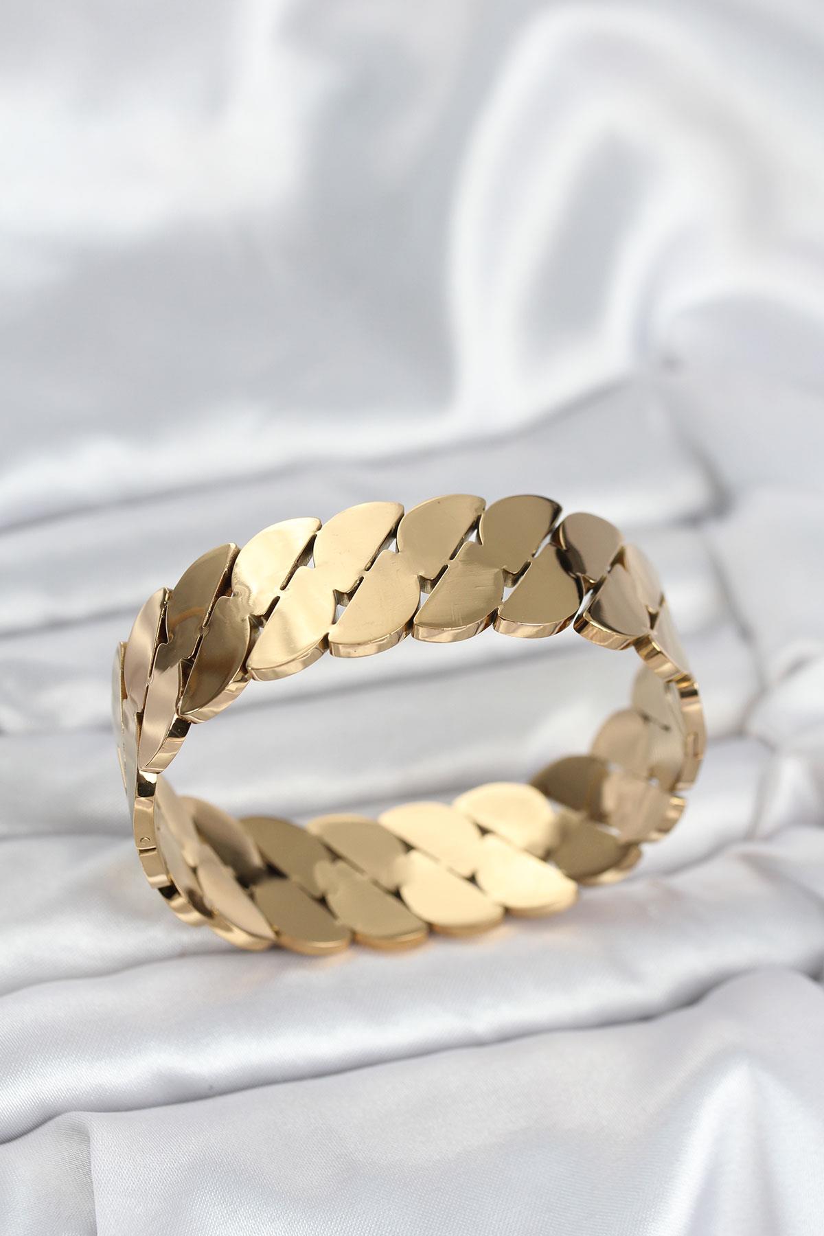 316L Çelik Gold Renk Ezme Zincir Model Kadın Kelepçe Bileklik