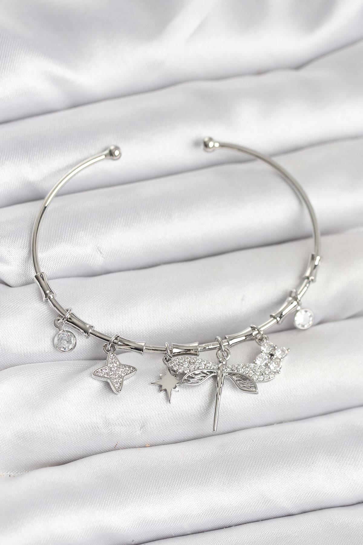 Yusufçuk Charmlı Gümüş Renk Pirinç Kadın Bileklik
